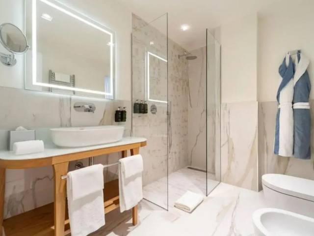 La habitación está decorada con calidez y cuenta con todo lo que necesitas para descansar después de un día largo y agitado. Incluye una TV, un minibar, batas y pantuflas. Ten en cuenta que no todas las habitaciones incluyen todos los servicios mencionados.