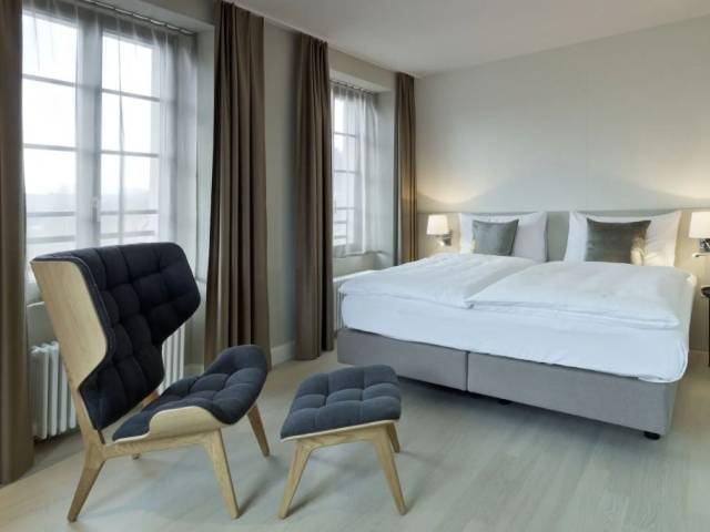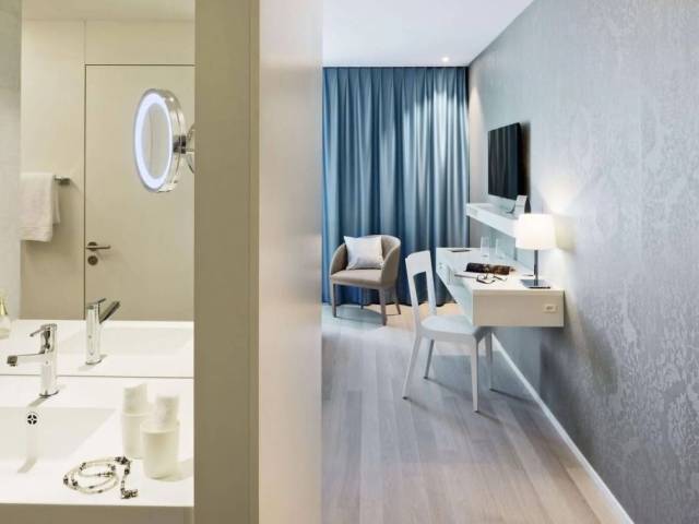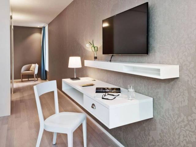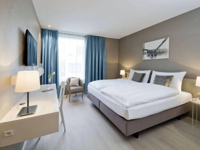 Esto es lo que encontrarás en la habitación para descansar después de un día largo: una TV y pantuflas. El equipamiento de la habitación depende de su categoría.