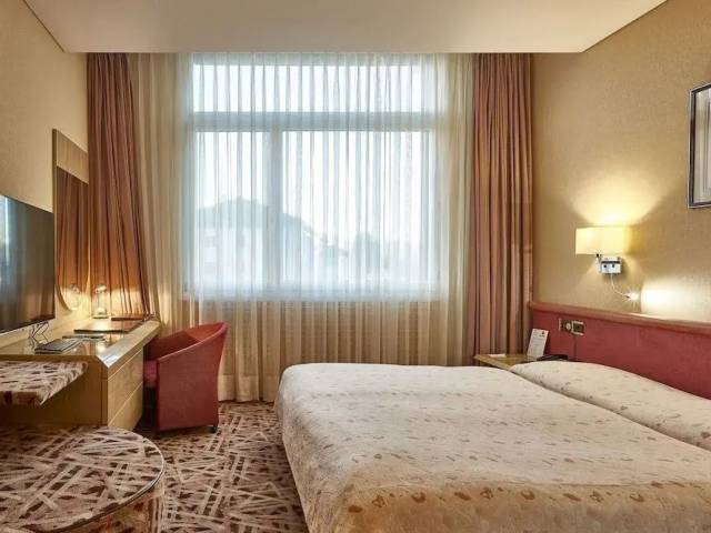 Esto es lo que encontrarás en la habitación para descansar después de un día largo: un reproductor de DVD, una ducha, una TV, un minibar y batas. El equipamiento de la habitación depende de su categoría.