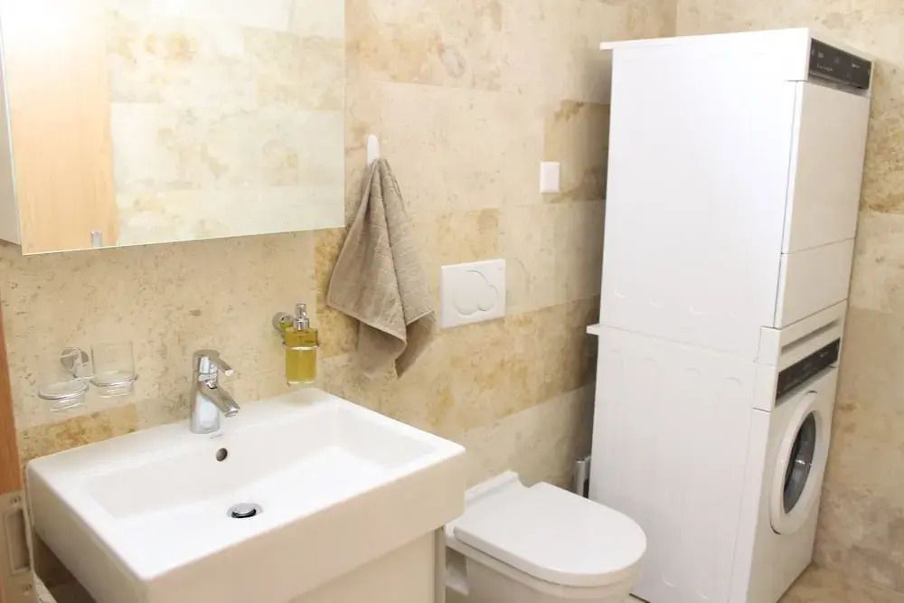 Hay más servicios disponibles para los huéspedes del apartamento. Por ejemplo, una sala de lavado y prensa.