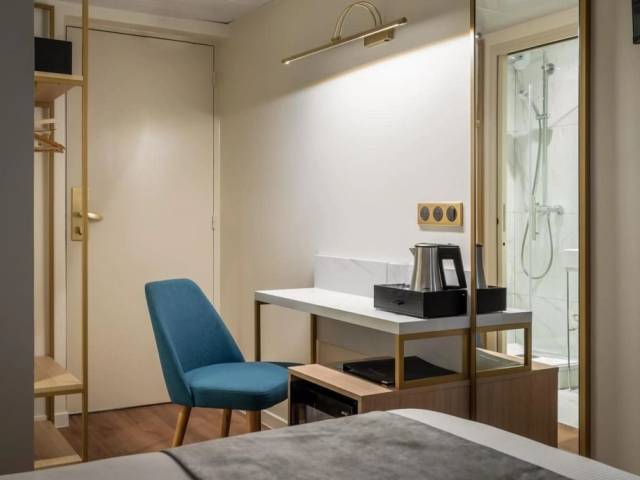 En la habitación, encontrarás una ducha, una TV, un minibar, batas y pantuflas. Ten en cuenta que no todas las habitaciones incluyen todos los servicios mencionados.
