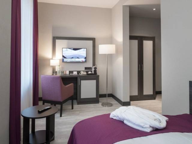 La habitación está decorada con calidez y cuenta con todo lo que necesitas para descansar después de un día largo y agitado. Incluye una ducha, una TV y batas. Ten en cuenta que no todas las habitaciones incluyen todos los servicios mencionados.