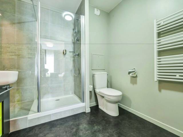 Esto es lo que encontrarás en la habitación para descansar después de un día largo: una ducha y una TV. Ten en cuenta que no todas las habitaciones incluyen todos los servicios mencionados.