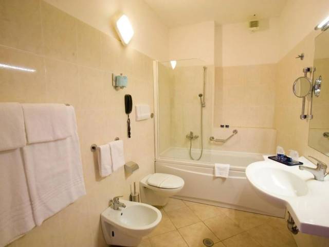 Esto es lo que encontrarás en la habitación para descansar después de un día largo: una ducha, una TV y un minibar. El equipamiento de la habitación depende de su categoría.