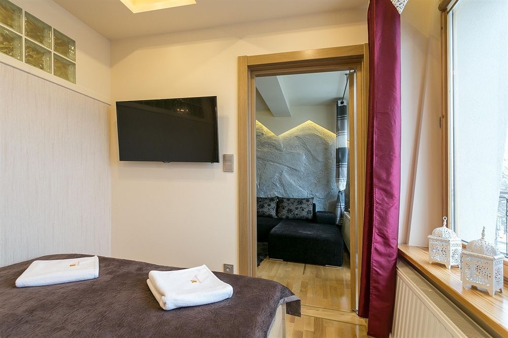 Zakopane, PoloniaEs una buena opción si buscas algo de descanso en el hotel, pero también caminar por la ciudad. Hotel «AquaPark Residence» se encuentra en Zakopane. Este hotel se encuentra a 1 km del centro de la ciudad. Puedes recorrer a pie el área residencial de el hotel. Lugares cercanos: Zakopane Aqua Park, Lower Rówień Krupowa y Tatra Museum.