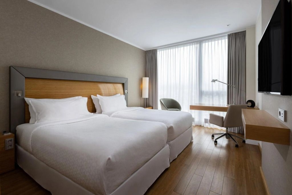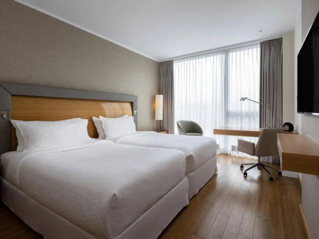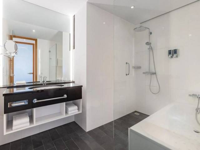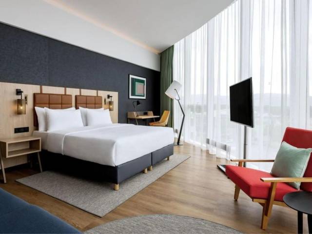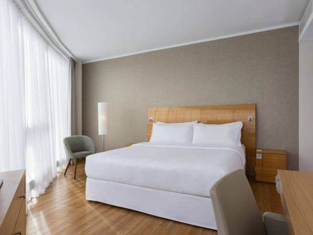 La habitación está decorada con calidez y cuenta con todo lo que necesitas para descansar después de un día largo y agitado. Incluye una TV, un minibar y pantuflas. Ten en cuenta que no todas las habitaciones incluyen todos los servicios mencionados.