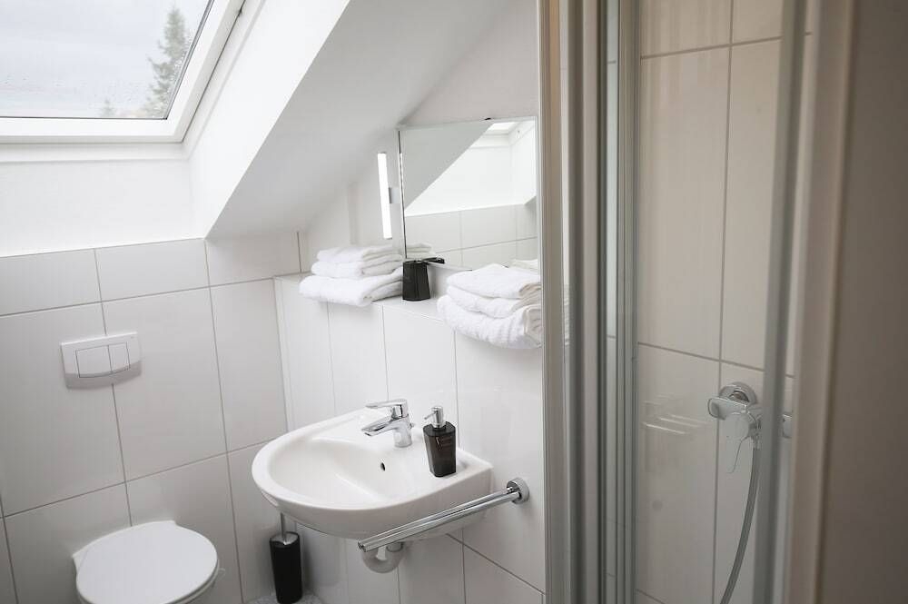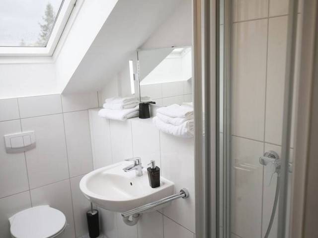 Esto es lo que encontrarás en la habitación para descansar después de un día largo: una ducha y una TV. El equipamiento de la habitación depende de su categoría.