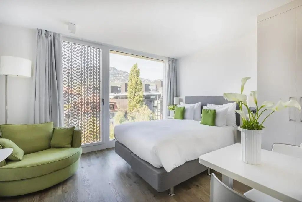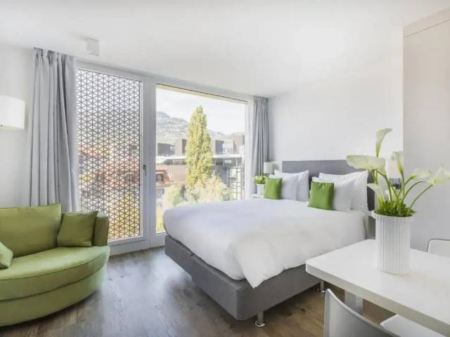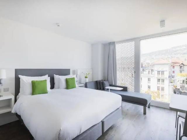 Vevey, Suiza«Base Vevey» se encuentra en Vevey. Este apartotel se encuentra exactamente en el centro de la ciudad. Por la mañana, puedes contemplar una gran vista de la ciudad mientras bebes tu café. Puedes recorrer a pie el área residencial de el apartotel: Castle Chatelard, Montreux Convention Center y Freddie Mercury Statue.