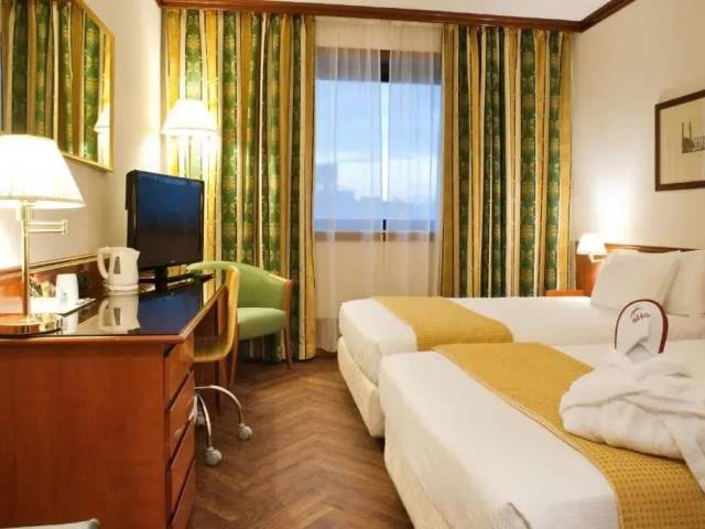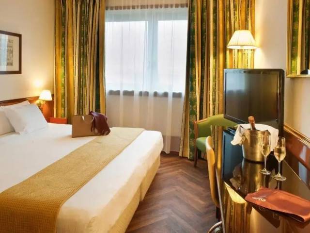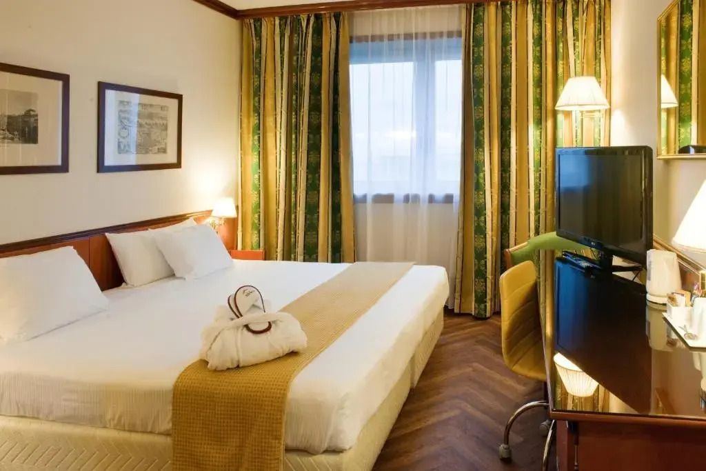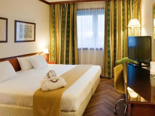 Esto es lo que encontrarás en la habitación para descansar después de un día largo: una TV y un minibar. El equipamiento de la habitación depende de su categoría.