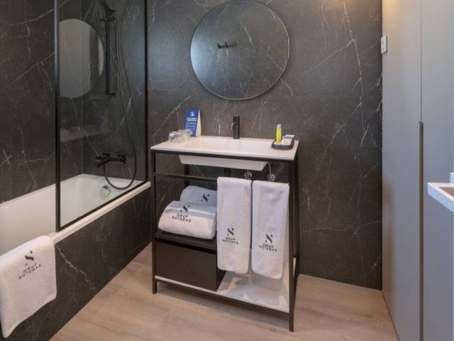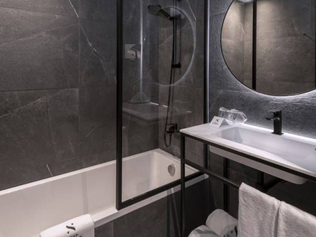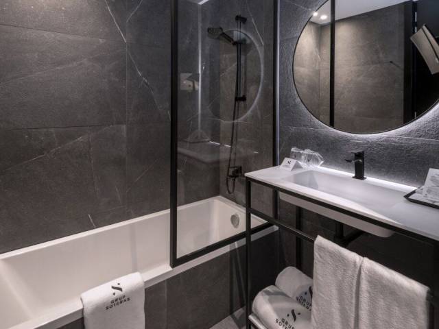 La habitación está decorada con calidez y cuenta con todo lo que necesitas para descansar después de un día largo y agitado. Incluye una TV, un minibar, batas y pantuflas. Ten en cuenta que no todas las habitaciones incluyen todos los servicios mencionados.