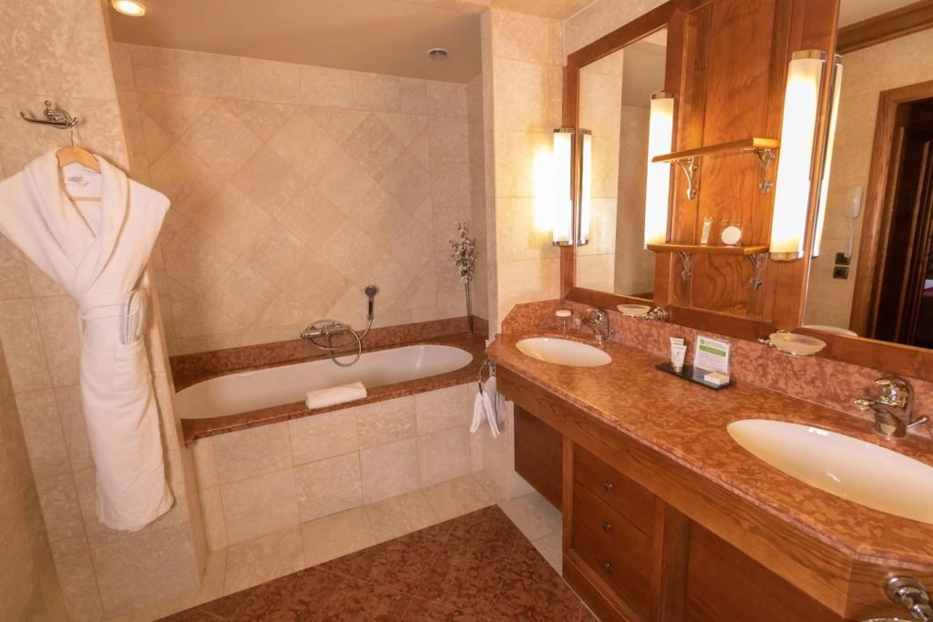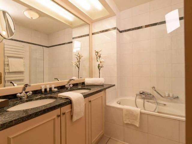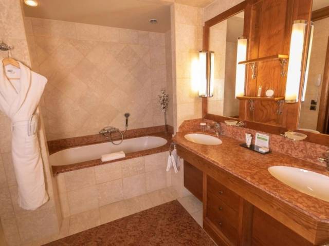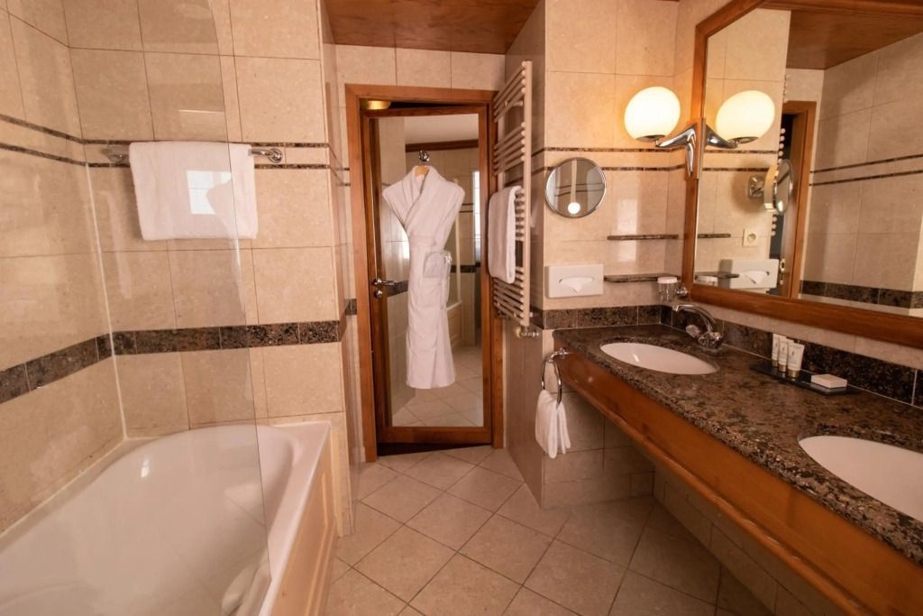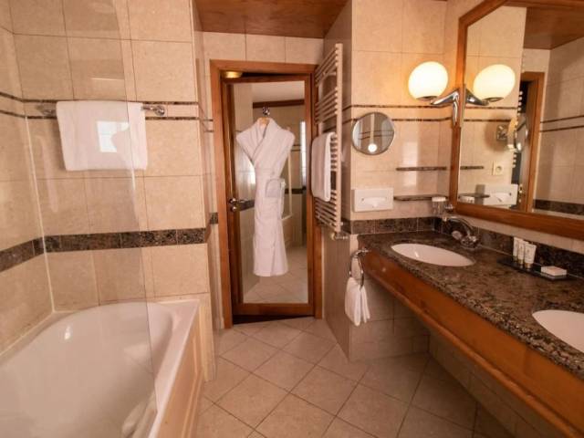 La habitación está decorada con calidez y cuenta con todo lo que necesitas para descansar después de un día largo y agitado. Incluye un reloj alarma, una ducha, una TV, un minibar, batas y pantuflas. El equipamiento de la habitación depende de su categoría.