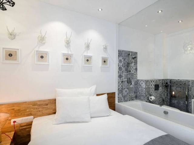 Esto es lo que encontrarás en la habitación para descansar después de un día largo: una TV y un minibar. Ten en cuenta que no todas las habitaciones incluyen todos los servicios mencionados.