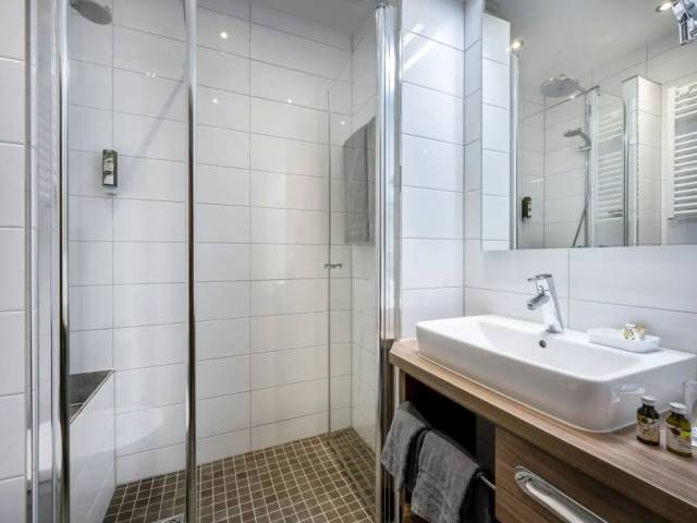 Esto es lo que encontrarás en la habitación para descansar después de un día largo: una ducha y una TV. Ten en cuenta que no todas las habitaciones incluyen todos los servicios mencionados.