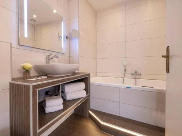 La habitación está decorada con calidez y cuenta con todo lo que necesitas para descansar después de un día largo y agitado. Incluye una ducha, una TV, un minibar y batas. El equipamiento de la habitación depende de su categoría.