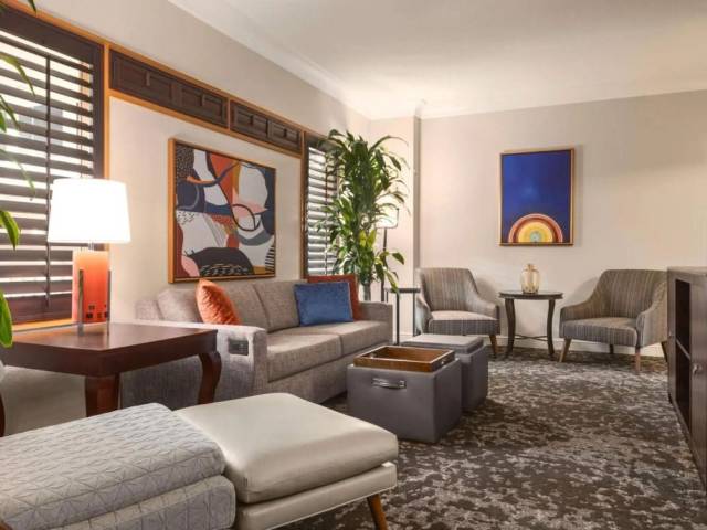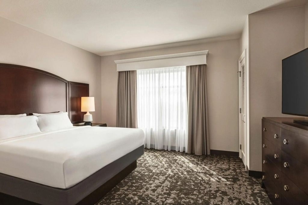 Es una buena opción si buscas algo de descanso en el hotel, pero también caminar por la ciudad. Hotel «Embassy Suites by Hilton Orlando Lake Buena Vista South» se encuentra en Kissimmee. Este hotel se encuentra a 9 km del centro de la ciudad. Puedes recorrer a pie el área residencial de el hotel. Lugares cercanos: Museo de Historia Militar, Discovery Cove y Epcot.