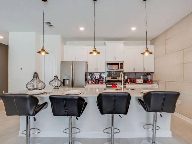 City of Kissimmee, Estados UnidosYa no busques más si quieres vacaciones saludables y sostenibles. villa «Lullaby Lane Villa Storey Lake» se encuentra en Kissimmee. Esta villa se encuentra a 8 km del centro de la ciudad. Puedes recorrer a pie el área residencial de la villa: Discovery Cove, SeaWorld Orlando y Epcot.