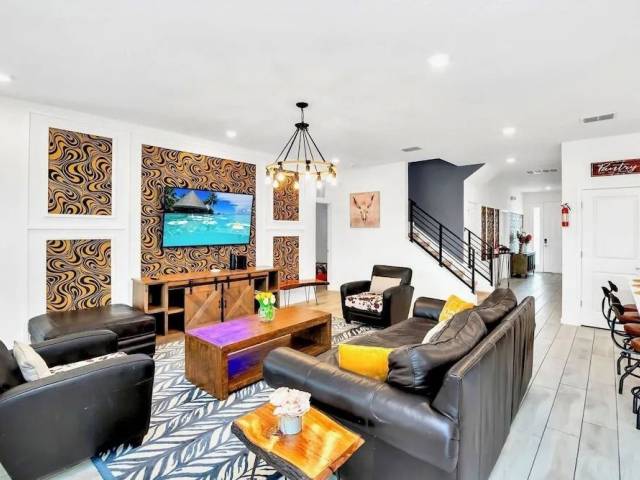City of Kissimmee, Estados UnidosVacaciones tranquilas o activas, tú decides. Cabaña «18Guest LakeView Home w HotTub Cinema» se encuentra en Kissimmee. Esta cabaña se encuentra a 6 km del centro de la ciudad. Puedes recorrer a pie el área residencial de la cabaña. Lugares cercanos: Discovery Cove, SeaWorld Orlando y Disney's Hollywood Studios.