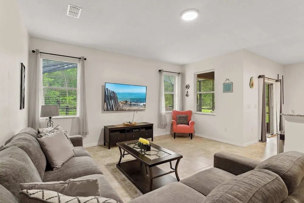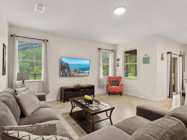 City of Kissimmee, Estados UnidosVacaciones tranquilas o activas, tú decides. Cabaña «Veranda Sunshine Escape 5 BDR» se encuentra en Kissimmee. Esta cabaña se encuentra a 6 km del centro de la ciudad. Puedes recorrer a pie el área residencial de la cabaña: Discovery Cove, SeaWorld Orlando y Disney's Hollywood Studios.