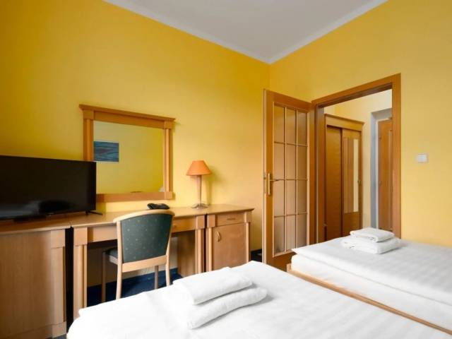Karlovy Vary, República ChecaEs una buena opción si buscas algo de descanso en el hotel, pero también caminar por la ciudad. Hotel «Wellness hotel Jean de Carro» se encuentra en Karlovy Vary. Este hotel se encuentra a cerca del centro de la ciudad. Puedes recorrer a pie el área residencial de el hotel: Church of St. Mary Magdalene, Market Colonnade y Spa Zámecké Lázně.