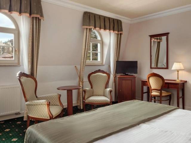 Karlovy Vary, República ChecaAquí disfrutarás todo el tiempo. Resort «Humboldt Park Hotel And Spa» se encuentra en Karlovy Vary. Este resort se encuentra en el centro de la ciudad. Por la mañana, puedes contemplar una gran vista de la ciudad mientras bebes tu café. Puedes recorrer a pie el área residencial de el resort: Dvorzhakovy gardens, Karlovy Vary Christmas Market y Lazne III.