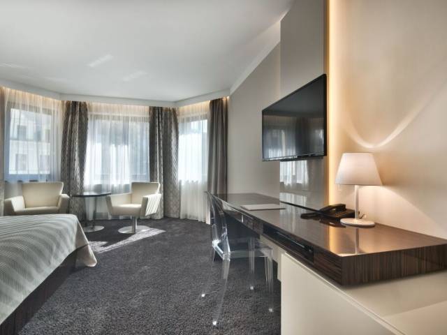 En la habitación, encontrarás un reproductor de DVD, una TV, un minibar, batas y pantuflas. Ten en cuenta que no todas las habitaciones incluyen todos los servicios mencionados.