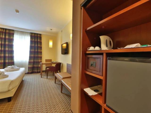 La habitación está decorada con calidez y cuenta con todo lo que necesitas para descansar después de un día largo y agitado. Incluye una TV y un minibar. Ten en cuenta que no todas las habitaciones incluyen todos los servicios mencionados.