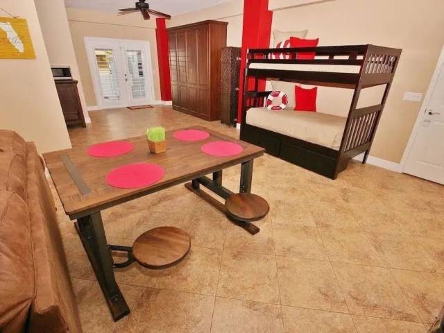 New Smyrna Beach, Estados UnidosUn lugar fenomenal para quienes busquen vacaciones sin vecinos. Cabaña «The Sunshine House Holiday home 3» se encuentra en New Smyrna Beach. Esta cabaña se encuentra a 11 km del centro de la ciudad. Puedes recorrer a pie el área residencial de la cabaña. Lugares cercanos: Bethune Volusia Beach.