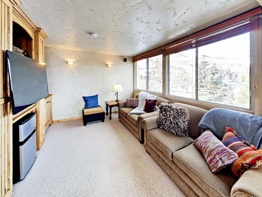 Park City, Estados UnidosSi buscas comodidad como en casa: apartamento «Mountain-view W/ Hot Tub, Across From Lift 2 Bedroom Condo» se encuentra en Park City. Este apartamento se encuentra a minutos de distancia del centro de la ciudad. Puedes recorrer a pie el área residencial de el apartamento: Silver Star Lift, Three Kings Lift y First Time Lift.