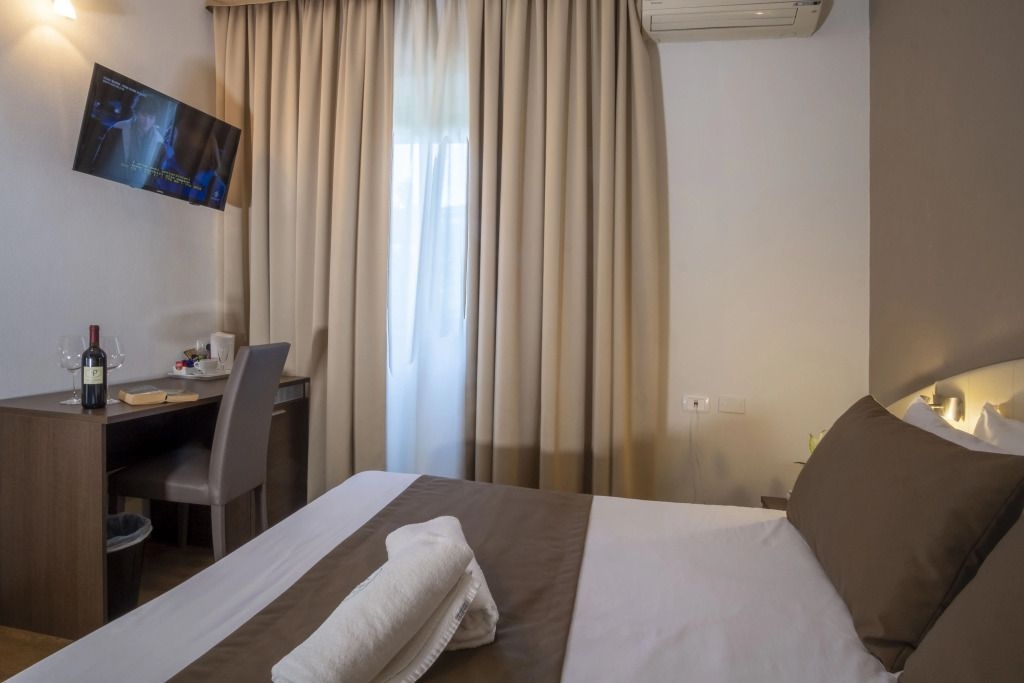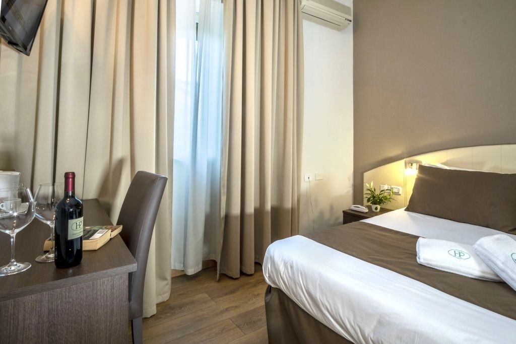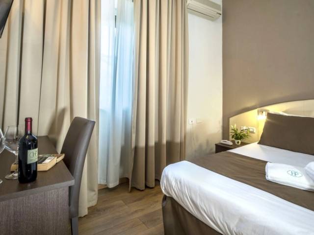 Esto es lo que encontrarás en la habitación para descansar después de un día largo: una ducha y un minibar. El equipamiento de la habitación depende de su categoría.