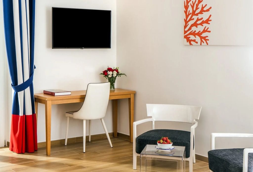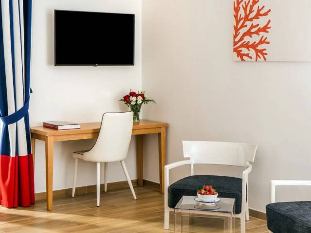 Esto es lo que encontrarás en la habitación para descansar después de un día largo: una TV y un minibar. El equipamiento de la habitación depende de su categoría.