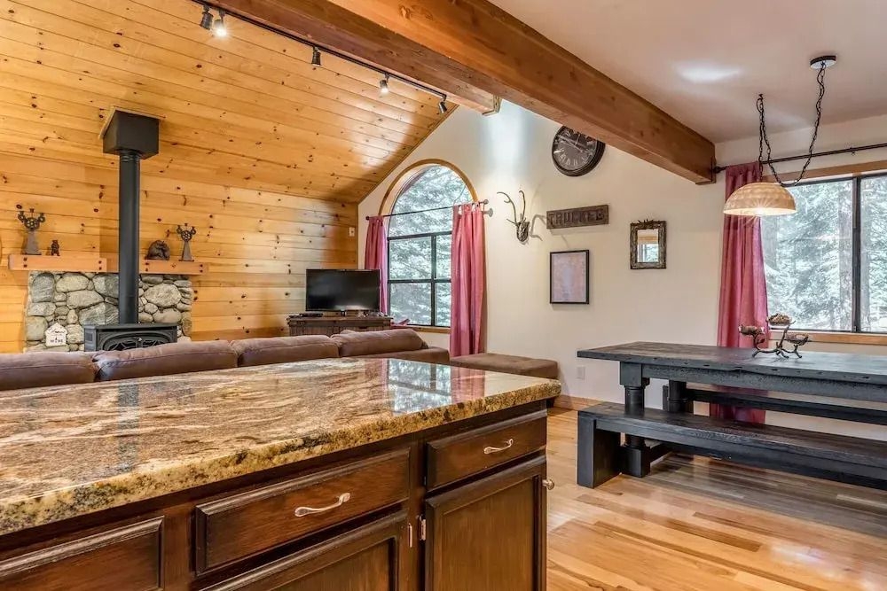 Truckee, Estados Unidos¿Quieres huir del ruido de la ciudad y descansar? Cabaña «Snowmass Log House on the River by RedAwning» se encuentra en Truckee. Esta cabaña se encuentra a 3 km del centro de la ciudad. Puedes recorrer a pie el área residencial de la cabaña: Campo de golf Coyote Moon.