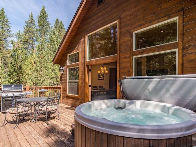 Truckee, Estados UnidosUn lugar fenomenal para quienes busquen vacaciones sin vecinos. Cabaña «3br W/ Hot Tub, Fireplace, & Grill 3 Bedroom Home» se encuentra en Truckee. Esta cabaña se encuentra a 4 km del centro de la ciudad. Puedes recorrer a pie el área residencial de la cabaña: Campo de golf Tahoe Donner y Campo de golf Coyote Moon.