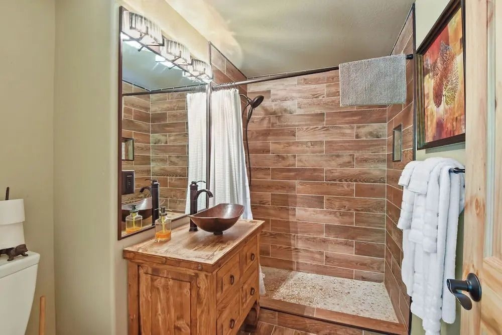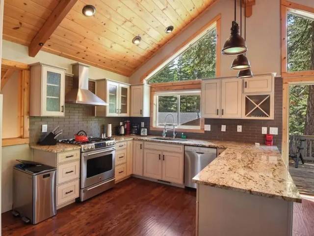 Tahoe Vista, Estados UnidosUn lugar fenomenal para quienes busquen vacaciones sin vecinos. Cabaña «Luxury Tahoe Chalet Minutes to Dining» se encuentra in North Lake Tahoe. Esta cabaña se encuentra a 4 km del centro de la ciudad. Puedes recorrer a pie el área residencial de la cabaña: Cumbre Brockway Summit.