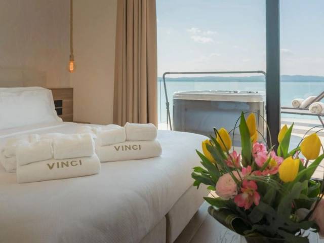 Sirmione, Italia¿Quieres tomarte un descanso y explorar la ciudad? Hotel «Hotel Vinci Sirmione» se encuentra en Sirmione. Este hotel se encuentra a minutos de distancia del centro de la ciudad. Puedes recorrer a pie el área residencial de el hotel: Basilica of San Zeno Maggiore, Ponte Scaligero y Castelvecchio.