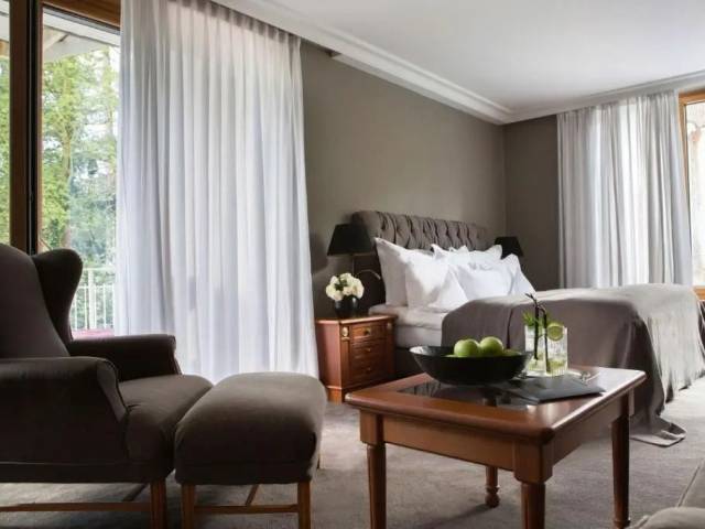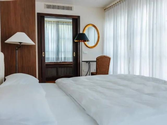 Esto es lo que encontrarás en la habitación para descansar después de un día largo: una ducha, una TV, batas y pantuflas. El equipamiento de la habitación depende de su categoría.