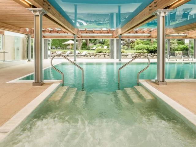 Aire acondicionadoRecepción 24 hAscensorCalefacciónJardínTerrazaServicio habitacionesMinibarSecadoraRopa de camaLavanderíaCaja de SeguridadServicio de despertadorTeléfonoBarDesayunoRestauranteTraslados al aeropuertoBibliotecaSenderismoPiscinaBañera de hidromasajeGimnasioMasajesSaunaSauna