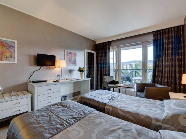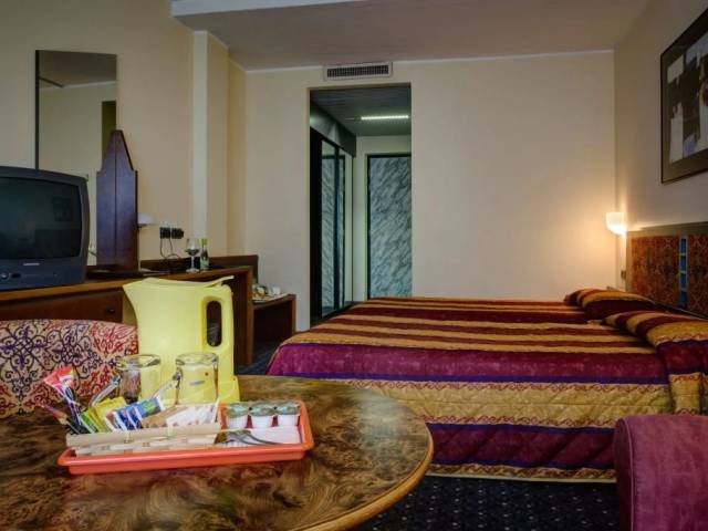 Esto es lo que encontrarás en la habitación para descansar después de un día largo: una ducha, un minibar, batas y pantuflas. El equipamiento de la habitación depende de su categoría.