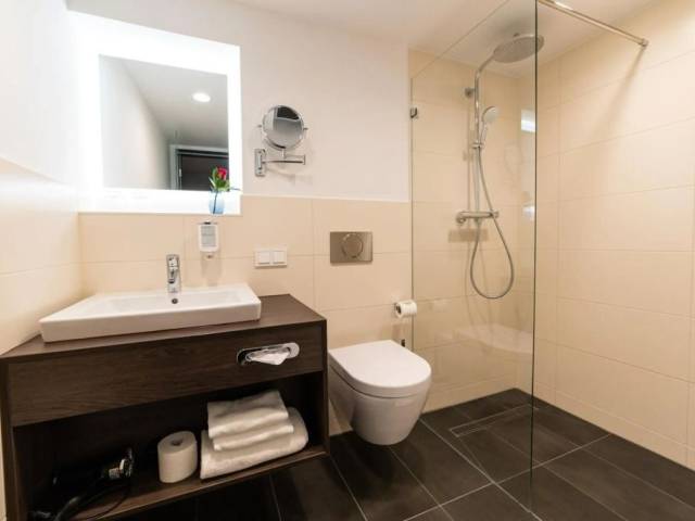 La habitación está decorada con calidez y cuenta con todo lo que necesitas para descansar después de un día largo y agitado. Incluye una ducha, una TV y un minibar. El equipamiento de la habitación depende de su categoría.