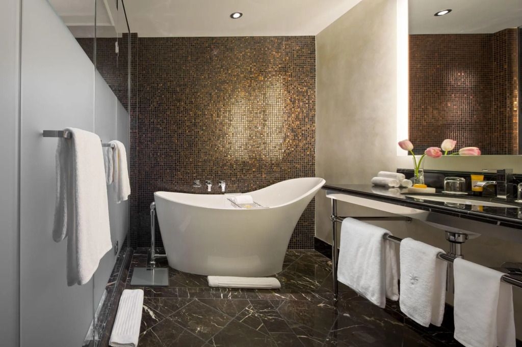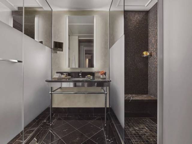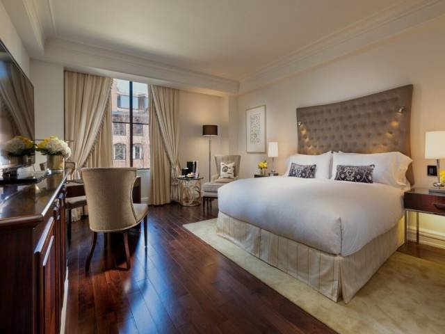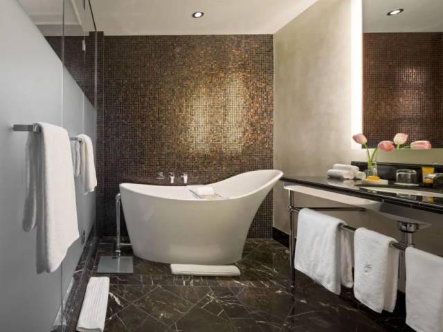 Esto es lo que encontrarás en la habitación para descansar después de un día largo: una ducha, una TV, un minibar, batas y pantuflas. El equipamiento de la habitación depende de su categoría.
