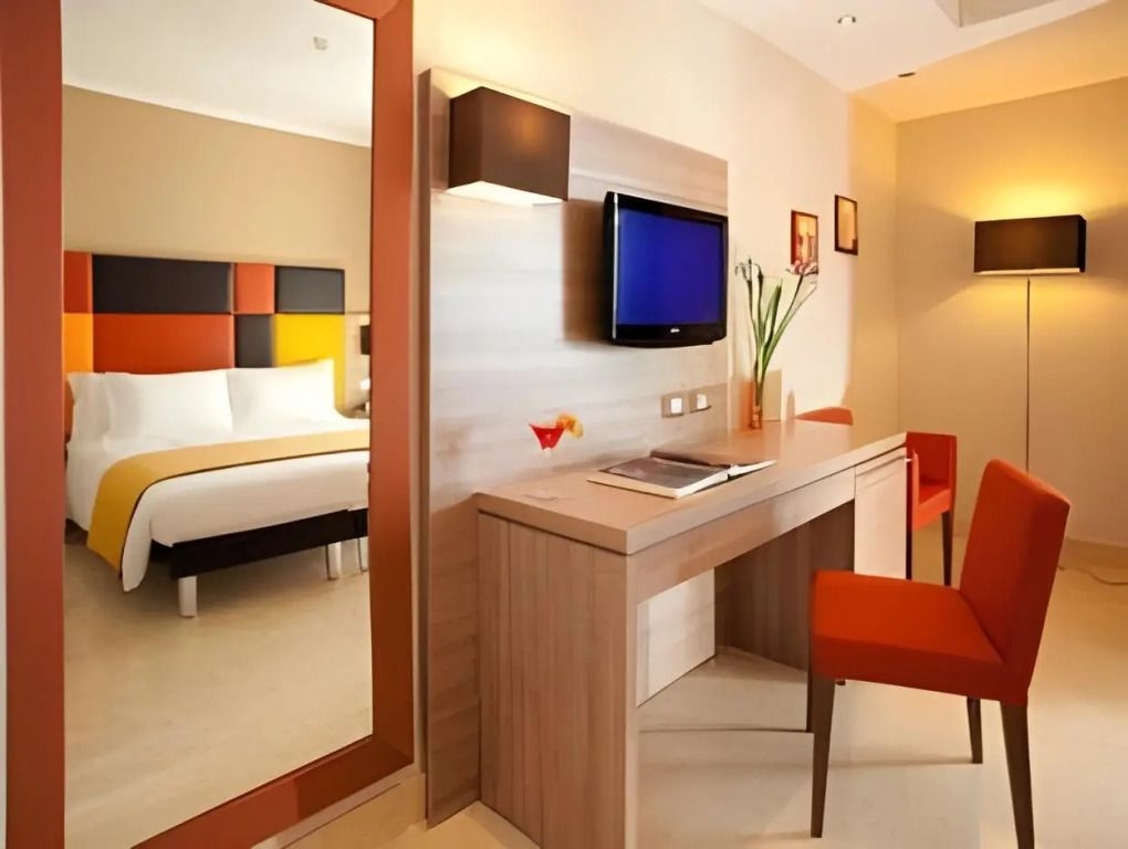 La habitación está decorada con calidez y cuenta con todo lo que necesitas para descansar después de un día largo y agitado. Incluye una ducha, una TV, un minibar y pantuflas. El equipamiento de la habitación depende de su categoría.