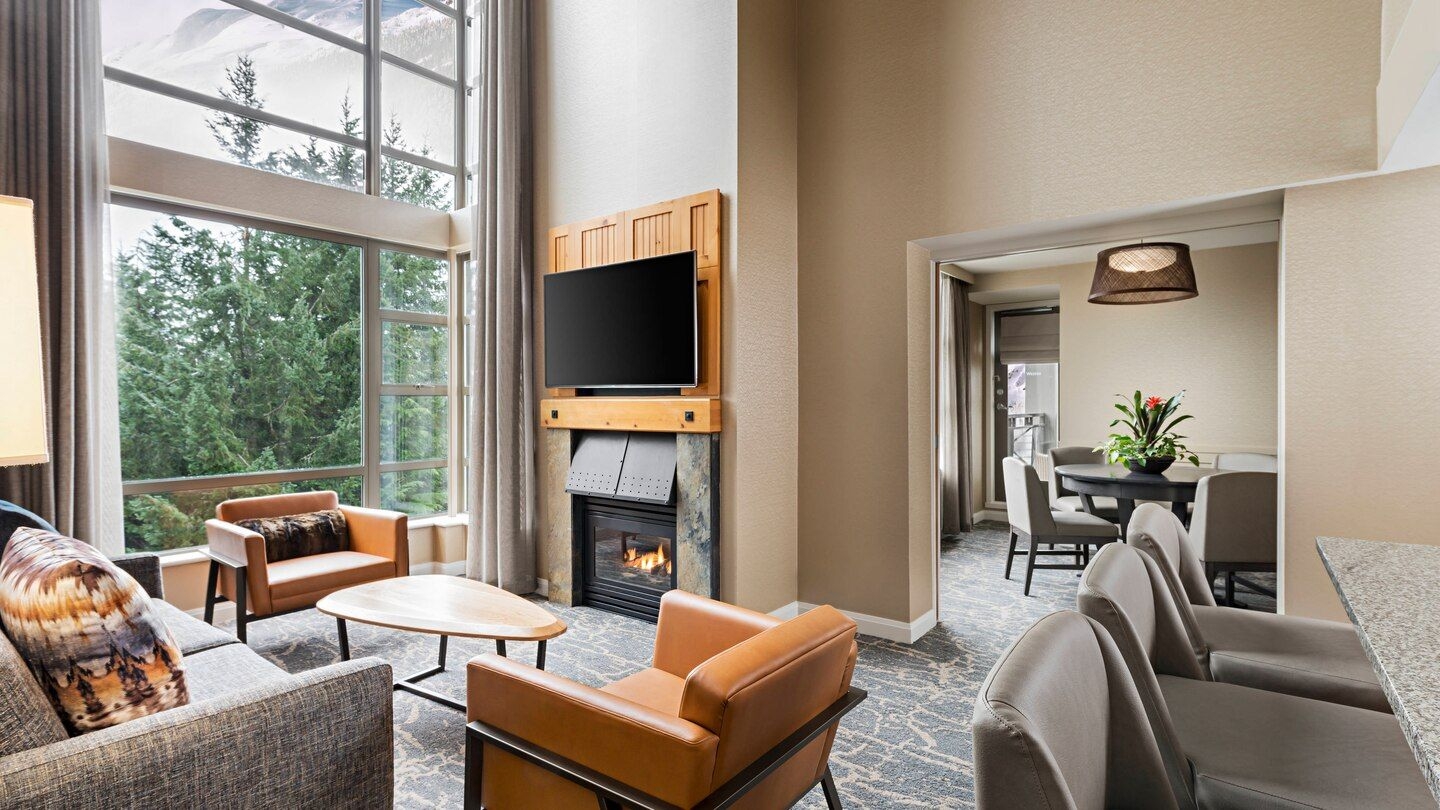 Todas las habitaciones del The Westin Resort and Spa, Whistler disponen de TV de pantalla plana con canales por cable, chimenea, baño privado con bañera y vistas a la montaña donde podra practicar el esqui .