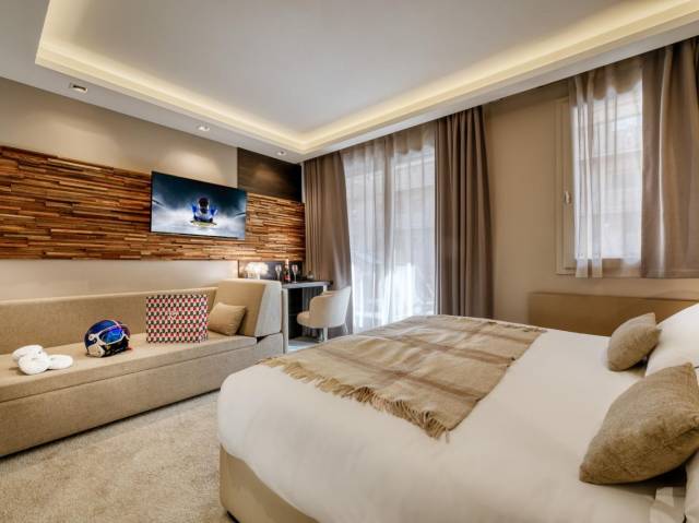 Las habitaciones, reformadas en julio de 2015, disponen de minibar, TV de pantalla plana con canales vía satélite e internacionales y balcón con vistas a las pistas o a la localidad, además de baño privado con bañera o ducha, albornoces, zapatillas, secador de pelo y artículos de aseo gratuitos.