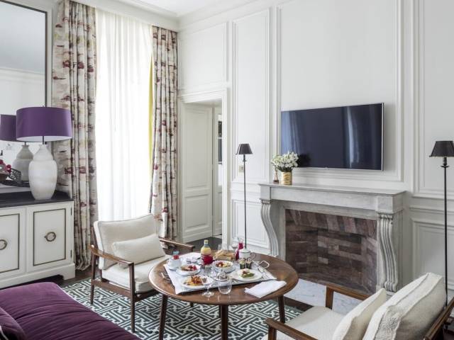 El J.K. Place Paris también cuenta con una zona de bienestar con piscina cubierta, hammam y sauna.