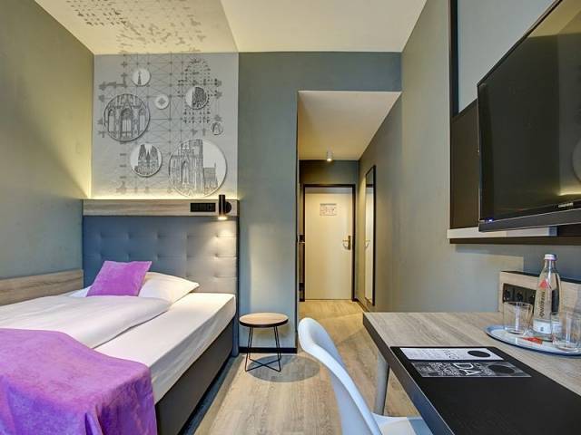 Nuestro Hotel Boutique 003 Cologne Dom está justo en el centro de la ciudad, a solo dos minutos a pie de la Catedral de Colonia y de la estación de tren principal. El recinto ferial y el Lanxess Arena están a solo una parada de metro o tren. Las 85 habitaciones del Boutique 003 Colonia ofrecen la base perfecta y económica para excursiones privadas y viajes de negocios a las principales ferias comerciales de Colonia. Tenga en cuenta que algunas habitaciones de cada categoría solo están disponibles por las escaleras.
