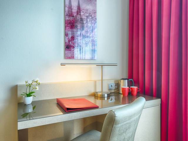 El Leonardo Hotel Köln, situado a solo 1,5 km del centro de exposiciones Kölnmesse y el Lanxess Arena, ofrece una gran variedad de alojamientos. La estación de metro Buchforst Waldecker Straße se encuentra a 5 minutos a pie del Leonardo Hotel. Los trenes directos de S-Bahn (tren urbano) van a Köln-Buchforst, a 7 minutos a pie. Leonardo Hotel Köln cuenta con 165 espaciosas habitaciones. Todos tienen aire acondicionado y una decoración moderna. Todos los días se sirve un desayuno bufé internacional y un relajante bar para que los huéspedes se relajen durante toda la noche. El estacionamiento en el lugar está disponible por un suplemento en el Leonardo Köln.