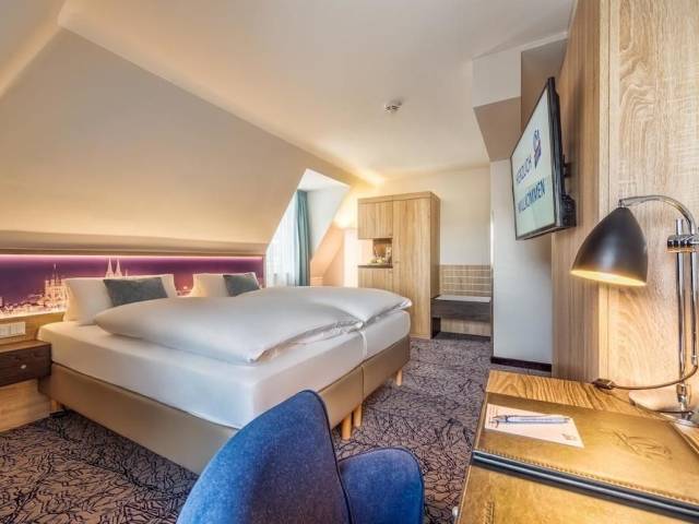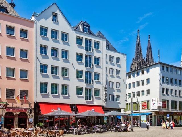 El hotel está situado directamente en el famoso casco antiguo, justo en el "Alter Markt", un mercado antiguo y uno de los puntos de referencia de Colonia. Las habitaciones son de tamaño medio y están decoradas con un estilo cómodo, bastabte tradicional y acogedor. Los baños también son de tamaño medio y están muy limpios y ordenados. Hay una sala de desayunos donde se sirve un abundante buffet caliente alemán de desayuno. Edificio moderno, de color blanco, de 5 pisos. El vestíbulo es cómodo y acogedor y está decorado de forma tradicional - hay una pequeña zona de asientos frente al mostrador de recepción.Se trata de un hotel privado muy agradable situado en el corazón del casco antiguo, a un corto paseo de la famosa catedral. 0507 hm