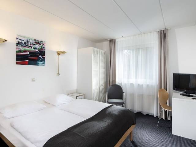 InstalacionesEl establecimiento fue renovado en 2011. El establecimiento dispone de 68 alojamientos. Se puede llegar a las plantas superiores cómodamente en ascensor. Las instalaciones incluyen Wi-Fi, restaurante, sala de desayunos, bar, sala de TV y centro de negocios. Los huéspedes que lleguen en coche pueden dejarlo en un garaje o en el aparcamiento.HabitacionesTodos los alojamientos disponen de calefacción central y cuarto de baño. En las zonas de dormitorio y salón, con suelo enmoquetado, hay cama doble. Además, hay escritorio disponible. Todas las habitaciones ofrecen teléfono y TV. En los cuartos de baño hay ducha, bañera y secador de pelo. ComidasEl establecimiento ofrece, como servicio gastronómico, la posibilidad de reservar desayuno y alojamiento con desayuno.Tarjetas de créditoEn el establecimiento se aceptan las siguientes tarjetas de crédito: American Express, Visa y MasterCard.