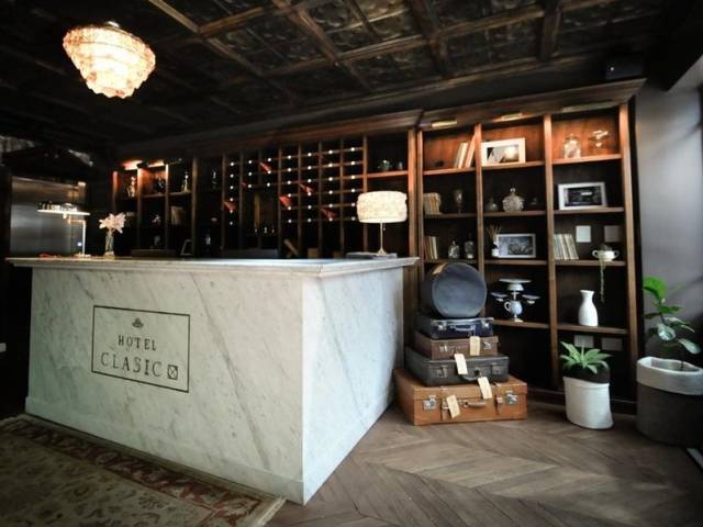 Lujo, confort y detalles decorativos dotan de una personalidad única a esta cálida propuesta. Ningún detalle fue librado al azar, cada rincón fue pensado y desarrollado por Adolfo Suaya, quien con su particular estilo definió cada una de las distintas áreas y servicios del hotel. Muebles de maderas nobles y objetos restaurados artesanalmente proveen a cada sector una fuerte impronta. En el hall de entrada se presenta imponente la recepción: con sus mesadas de mármol, pisos de roble y hermosas arañas de techo, que junto con los distintos vitrales que enmarcan el frente del hotel, tiñen el ambiente de luz y colores.