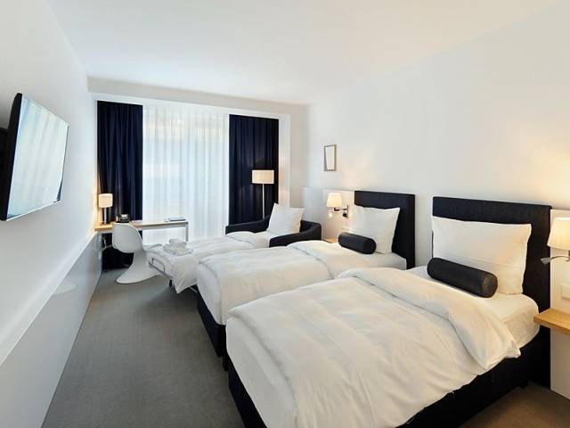 Todas las habitaciones disponen de aire acondicionado y están insonorizadas. Están equipadas con elegantes muebles, diseñados y elaborados en Munich, TV 40 pulgadas, camas Simmons y modernos baños con calefacción por el suelo. Hay ocho categorías diferentes de habitaciones. El wifi es gratuito en todo el hotel.