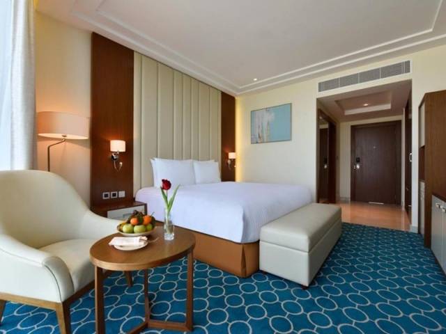 Con 193 habitaciones y suites de diseño único y 6 chalés bien equipados donde la sofisticación se combina con el estilo contemporáneo, el Grand Swiss-Belhotel Waterfront Seef está equipado con instalaciones excepcionales. Las opciones de alojamiento van desde habitaciones superiores hasta habitaciones de lujo, habitaciones de lujo con balcón, suites ejecutivas, suites ejecutivas con balcón, las hermosas suites y chalés del piso 16.
